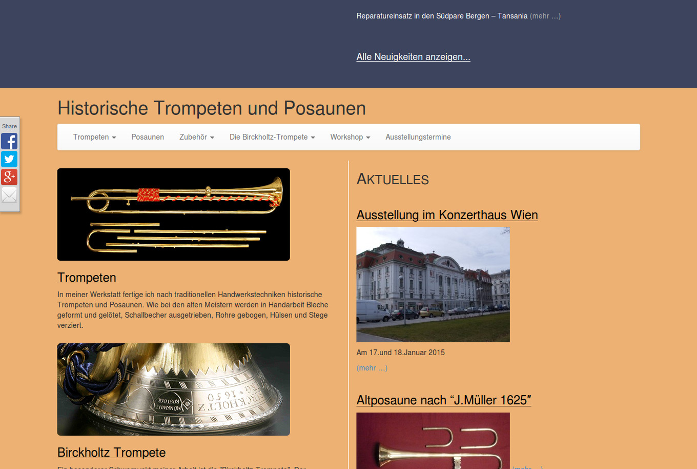 Beim Design dieser Webseite haben wir versucht, die Atmosphäre der Trompetenwerkstatt zu vermitteln.